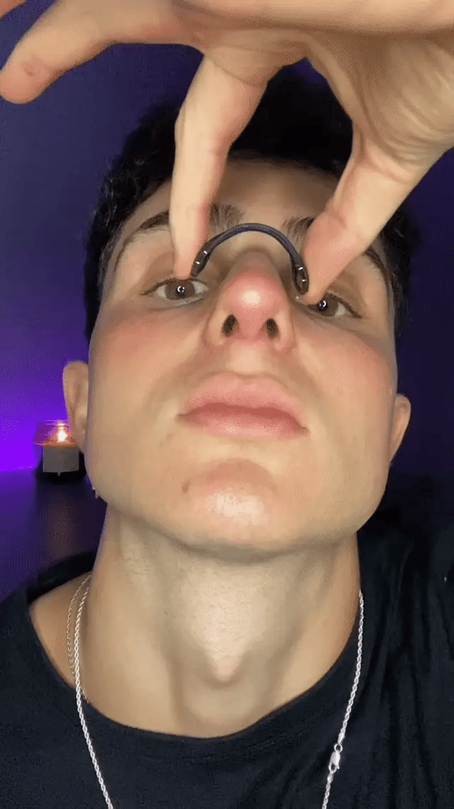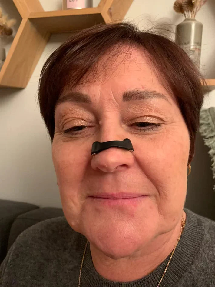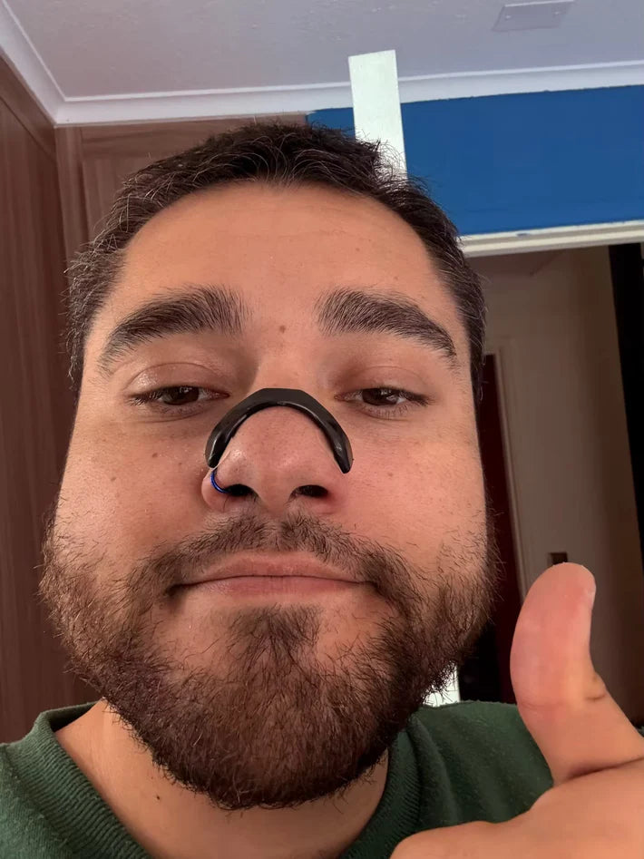 3️⃣ Coloca la banda – Inserta suavemente en cada lado de la nariz.